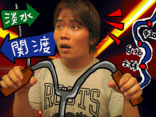 終於我騎到了淡水。淡水很熱鬧,都是燈,讓我很放心。想待會可以搭捷運回家吧,先大吃大喝一番好了。沒想到…在我吃了雞排逛了淡水老街,在捷運站前面喝完了一大瓶柳橙汁(因為捷運不能飲食),準備要回家的時候,捷運的工作人員說:「腳踏車只有週末才可以進出捷運站」。